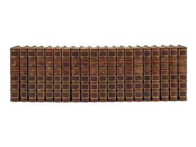 8 works in 20 volumes, 8vo, uniformly bound in 20th-century quarter morocco, marbled boards, top edge gilt (some light rubbing).