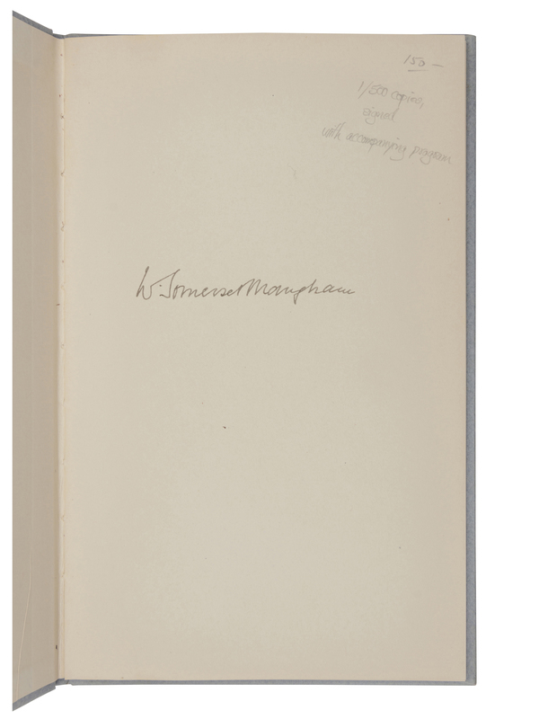 LIMITED EDITION, one of 500 unnumbered copies SIGNED BY MAUGHAM of a total edition of 800. A copy of the original program from Maugham's 20 April 1946 address at the Library of Congress laid in.
