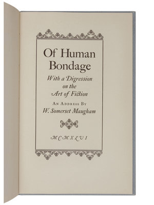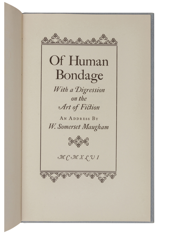 MAUGHAM, William Somerset (1874-1965). Of Human Bondage; with a Digression on the Art of Fiction. An Address. Washington, D. C.: U. S. Government Printing Office, 1946.