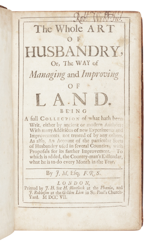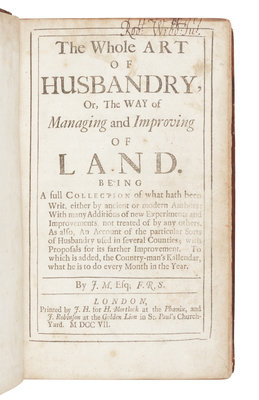 MORTIMER, John (1656?-1736). The Whole Art of Husbandry. London: J. H. for H. Mortlock and others, 1707.