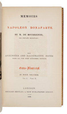 Later edition, an EXTRA-ILLUSTRATED COPY of the expanded 1836 edition which, according to the publisher, should be viewed “as a new book [rather] than as a reprint, [enriched with] many portraits and other embellishments that exist in no other edition of Bourrienne” (Editor’s preface).