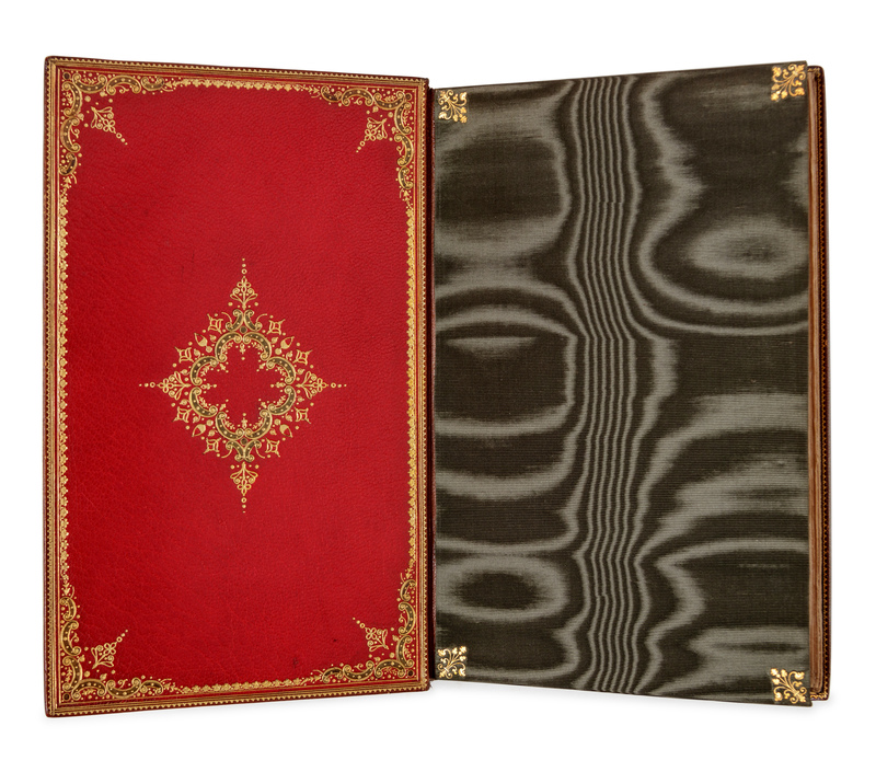 4 volumes, 8vo. Engraved portrait frontispiece to vol. I. Contemporary brown crushed levant, spines in 6 compartments with 5 raised bands, top edges gilt, others uncut, crimson crushed levant doublures elaborately gilt, green morocco drawer handle onlays, green watered silk endpapers gilt (very lightly rubbed at extremities, otherwise fine).