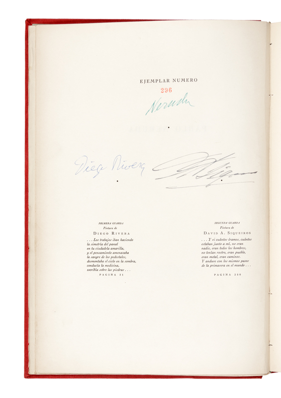 LIMITED EDITION, number 296 of 500 copies SIGNED BY NERUDA, RIVERA, AND SIQUEIROS.