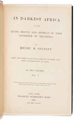 FIRST AMERICAN EDITION of Stanley’s account as leader of the controversial Emin Pasha Relief Expedition (1886-1889) in the Congo.