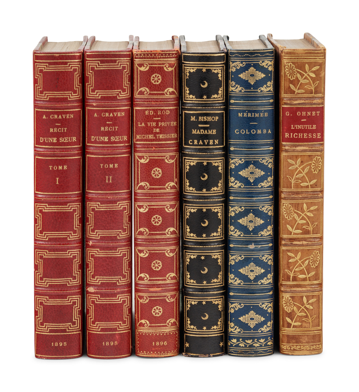 CRAVEN, Augustus. Récit D’une Soeur. 2 volumes. Paris: Librairie Académique Didier, 1895. 2 volumes. -- OHNET, Georges. Les Batailles de la Vie. L’Inutile Richesse. Paris: Paule Ollendorff, éditeur, 1896. -- ROD, Édouard. La vie Privée de Michel Teissier. Paris: Librairie Académique Didier, 1896. -- MÉRIMÉE, Prosper. Colomba. La Vénus d'Ille. Les Ames du Purgatoire. Paris: Calmann Lévy, éditeur, 1898. -- HAKLUYT, Richard. Hakluyt’s Voyages. London, Toronto, and New York: J.M. Dent and Sons Limited; E.P. Dutton & Co., 1927-1928. 10 volumes. – And 8 others. All in full or half morocco gilt or contemporary cloth, condition generally fine, complete list available on request.