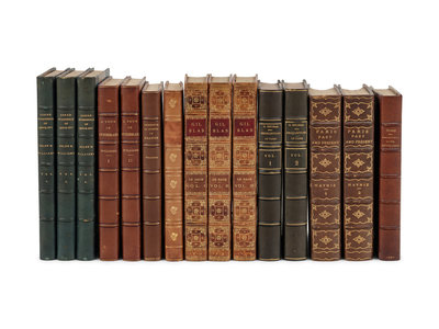 BURKE, Edmund. Reflections on the Revolution in France… London: for J. Dodsley, 1790. -- LE SAGE, Alain Rene. The Adventures of Gil Blas... London: for J. Mawman, and Baldwin, Cradock, and Joy, 1819. 3 volumes. -- BINGHAM, D. Recollections of Paris. London: Chapman and Hall, 1896. 2 volumes. -- HAYNIE, Henry. Paris Past & Present. New York: Frederick A. Stokes Company, 1902. 2 volumes. -- And 4 others. All in full or half morocco or calf gilt, condition generally fine, complete list available on request.