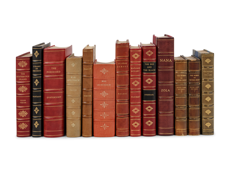 VOLTAIRE. Candide. London: John Lane the Bodley Head Ltd., 1928. -- VERNE, Jules. The Mysterious Island. New York: Charles Scribner’s Sons, 1937. -- TOLSTOY, Leo. War and Peace. London: Macmillan & Co. Ltd., 1943. -- DOSTOEVSKY, Fyodor. The Possessed. New York: The Limited Editions Club, 1959. -- HUGO, Victor. Notre-Dame de Paris. Boston: Estes and Lauriat, n.d. 2 volumes. -- And 7 others. All in modern full or half leather gilt, condition generally fine. Complete list available on request.