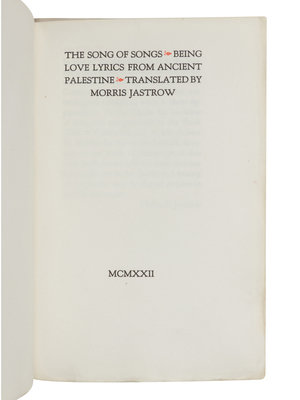 [GRABHORN PRINTING]. JASTROW, Morris, translator. The Song of Songs: Being Love Lyrics from Ancient Palestine. San Francisco: Edwin & Robert Grabhorn for The Book Club of California, 1922.