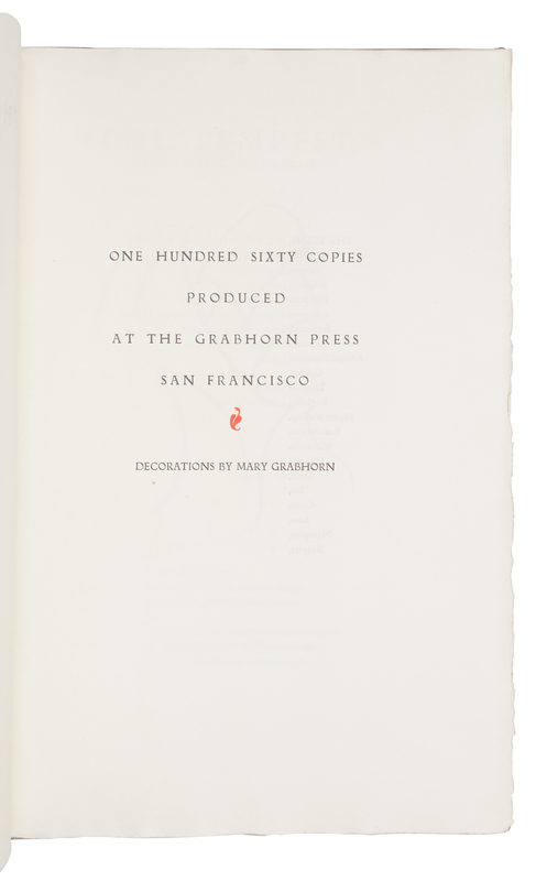 [GRABHORN PRINTING]. SHAKESPEARE, William (1564-1616). The Tempest. San Francisco: The Grabhorn Press, 1951.