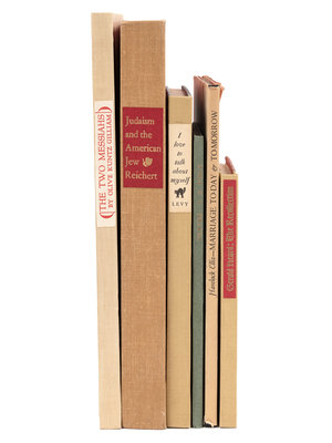 FIELD, Charles Kellogg. Prayer. San Francisco: Edwin and Robert Grabhorn Press for The Book Club of California, 1921. 8vo. Original boards. Number 300 of 330 copies. -- ELLIS, Havelock. Marriage Today and Tomorrow. 1929. 8vo. Original cloth-backed boards; original printed dust jacket. Number 145 of 500 copies SIGNED BY ELLIS. -- HEARD, Gerald. The Recollection. Stanford, CA: The Grabhorn Press for James Ladd Delkin, 1944. 12mo. Original cloth-backed boards. One of 250 copies. -- LEVY, Harriet. "I Love to Talk About Myself." 1947. 8vo. Original cloth-backed boards. One of 500 copies. -- REICHERT, Irving Frederick. Judiasim & the American Jew. 1953. 4to. Original cloth. Number 1101 of 1500 copies. -- GILLIAM, Olive Kuntz. The Two Messiahs. 1960. 4to. Original cloth-backed boards. One of 350 copies.