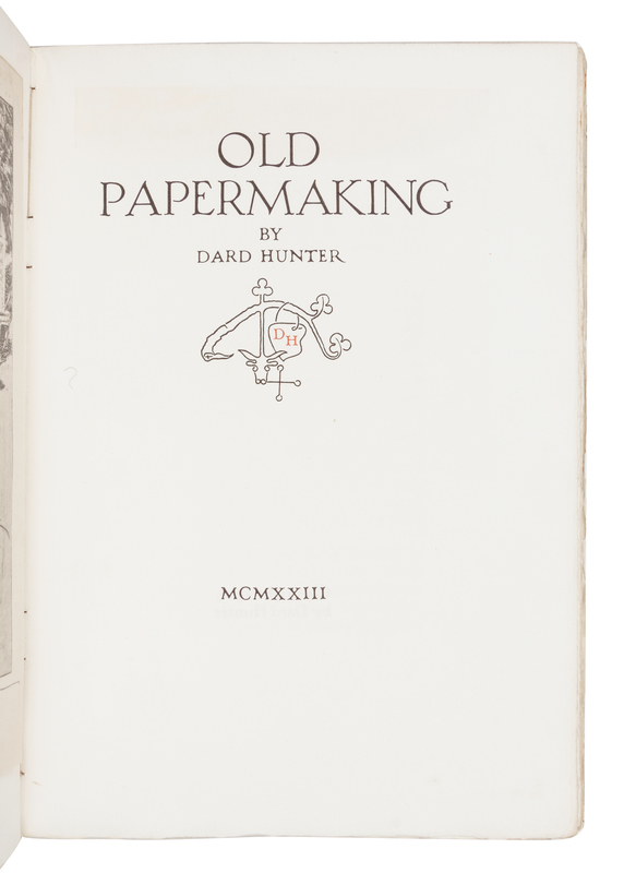 HUNTER, Dard (1883-1966). Old Papermaking. Chillicothe, OH: Dard Hunter, 1923.