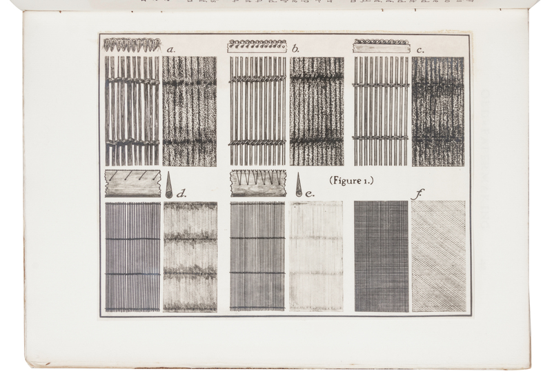 Small folio. 9 specimen sheets of old paper tipped in; 28 full-page illustrations, 40 illustrations in text. (Some toning from glue.) Original boards, uncut and unopened (separations along lower joint, some toning).