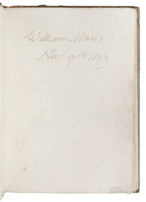 Work on the book began in August 1893, before production moved to the New Gallery for the annual Arts and Crafts Exhibition. It "was printed in public, under the eyes of an interested and constantly renewed crowd, whose presence imposed a severe strain upon the pressman Collins's Celtic modesty" (Sparling, The Kelmscott Press and William Morris Master-Craftsman, 1924, p. 87). "It was the first book printed in 16mo. The four-line initials used in it appear here for the first time." (Cockerell 18). Peterson A18 (recording another copy on vellum with Morris's bookplate and a note by Cockerell recording its sale to Henry Gamman, later offered in the sale of the Estelle Doheny Collection, Christie's New York, 19 May 1989, lot 2303).