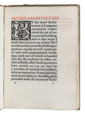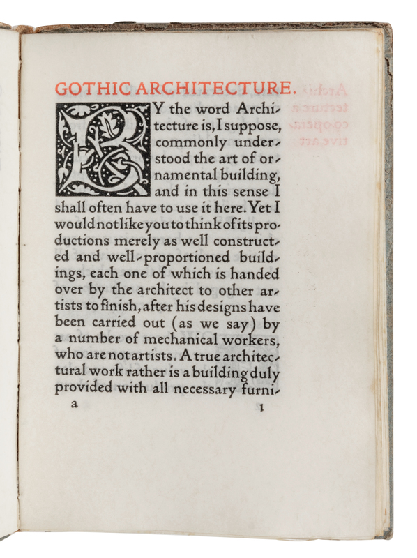 [MORRIS, William, his copy] -- [KELMSCOTT PRESS]. MORRIS, William (1834-1896). Gothic Architecture: A Lecture for the Arts and Crafts Exhibition Society. Hammersmith: The Kelmscott Press, 1893.