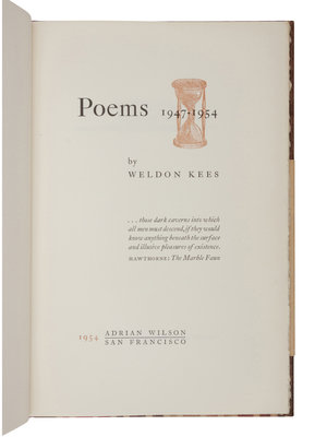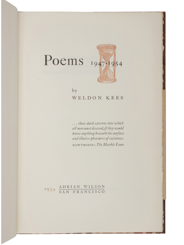 [WILSON, Adrian]. KEES, Weldon. Poems 1947-1954. San Francisco: Adrian Wilson, 1954.