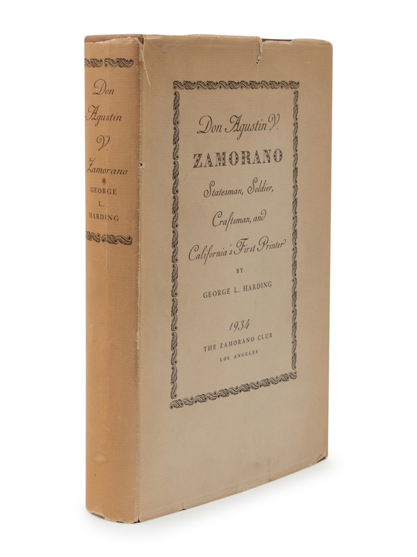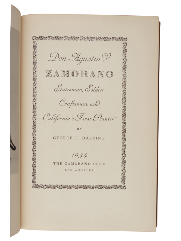 [ZAMORANO CLUB]. HARDING, George L. Don Agustin V. Zamorano: Statesman, Soldier, Craftsman, and California's First Printer. Los Angeles: The Zamorano Club, 1934.