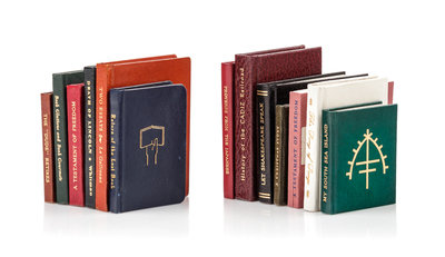MAUGHAM, W. Somerset. My South Sea Island. 1936. -- FORGUE, Norman W. One Hundred Proverbs Adapted from the Japanese. 1960. -- LEGALLIENNE, Richard. Two Essays. 1961. -- BLUMENTHAL, Walter Hart. Book Gluttons and Book Gourmets. 1962. -- WHITMAN, Walt. Death of Abraham Lincoln. 1962. -- WHITE, Robert W. History of the Cadiz Railroad. 1966. -- CONCIDINE, Francis. The “Dude” Retires. N.d. -- GALIENNE, Wilfred Hansford. Let Shakespeare Speak. N.d. -- J. B. H. Jr. A Christmas Story. N.d. -- SCHWARZWALD, Eugene. The Homecoming of the Lost Book. N.d. -- A Testament of Freedom. N.d. – A second copy in a variant binding. -- The Song of Songs, Which is Solomon’s. N.d.