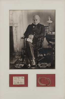 Matted and framed with photographic portrait (unexamined out of frame). "Hair of Hon. J. Q. Adams given to Mrs. Talbot by Mrs. John Adams June 9th 1848". Provenance: Goodspeed's Book Shop (label on verso).