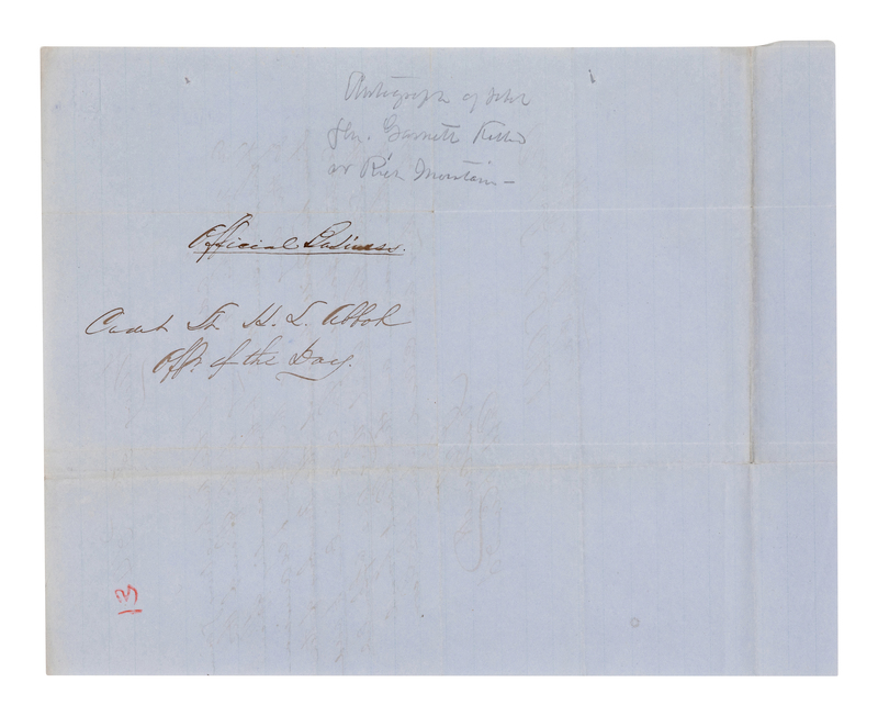GARNETT, Robert S. (1819-1861), Confederate brigadier. Autograph letter signed ("R. Garnett Capt"), to Officer of the Day Henry L. Abbott, addressed in his hand on verso. N.p., date illegible.