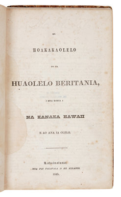 [HAWAIIAN IMPRINT - LAHAINALUNA]. He Hoakakaolelo no na Huaolelo Beritania, i mea kokua i na kanaka Hawaii e ao ana ia olelo. Lahainaluna: Mea Pai Palapala o ke Kulanui, 1845.