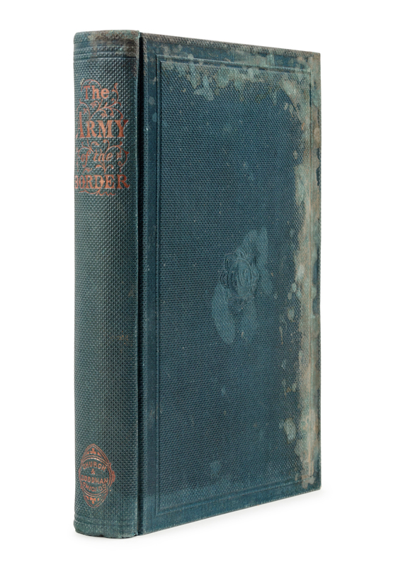 FIRST EDITION. Hinton, born in London, emigrated to the United States in 1851 and settled in Kansas in 1856. An abolitionist who supported the free state cause, he joined the Union army in 1862, retiring as a colonel in 1865. A RARE PRE-FIRE IMPRINT printed by Church, Goodman & Donnelley, stereotyped by J. Conahan, and bound by Cox & Donahue. Sabin 31969.