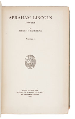 BEVERIDGE, Albert J. (1862-1927). Abraham Lincoln 1809-1858. Boston and New York: Houghton Mifflin Company, 1928.