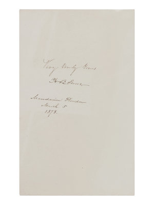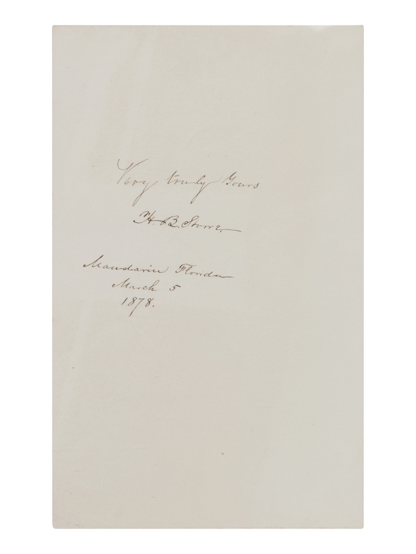 STOWE, Harriet Beecher (1811-1896). Autograph sentiment signed ("H. B. Stowe"), to an unnamed recipient. Mandarin, Florida, March 5 1878.