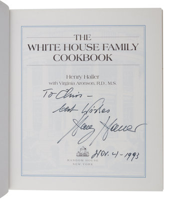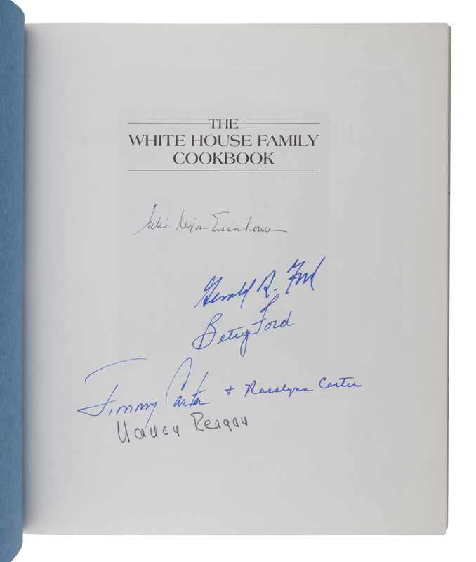 Later edition, SIGNED BY GERALD R. FORD, BETTY FORD, JIMMY CARTER, ROSALYNN CARTER, NANCY REAGAN, AND JULIE NIXON EISENHOWER. Additionally signed and inscribed by the author. Haller served as the White House Executive Chef for more than twenty years.