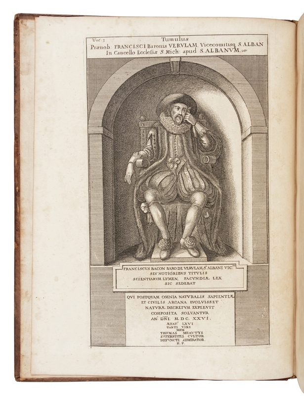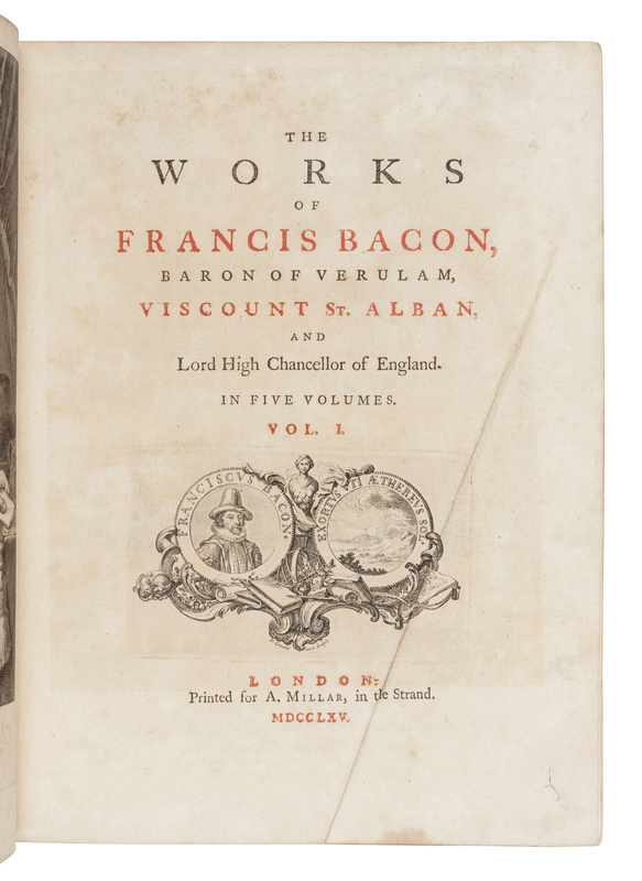 BACON, Sir Francis (1561-1626). The Works. London: A. Millar [vol. III: A. Millar and J. and R. Tonson], 1765.