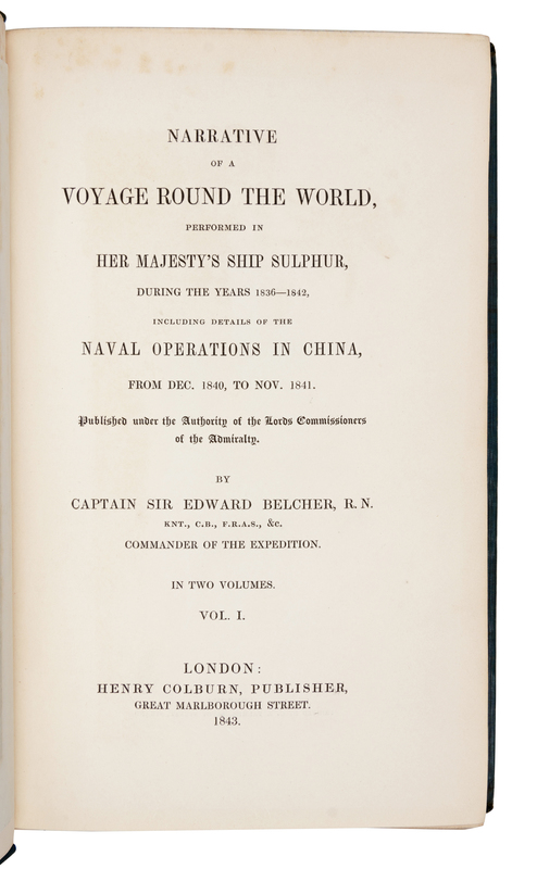 BELCHER, Edward, Sir (1799-1877). Narrative of a Voyage Round the World, performed in Her Majesty's Ship Sulphur,... 1836-1842. London: Henry Colburn, 1843.