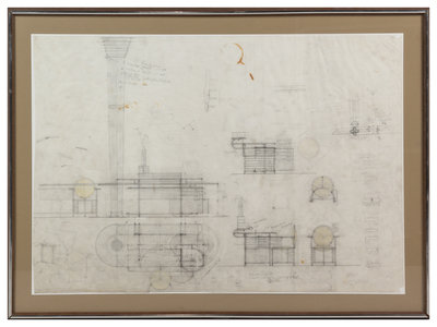 7 blueprints relating to the project (rolled, a few with tears). -- Together, 12 items. Provenance: acquired from Nelson Construction Company, Racine, Wisconsin.