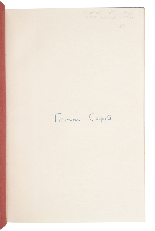 FIRST EDITION, FIRST PRINTING, SIGNED BY CAPOTE on a blank preliminary leaf.