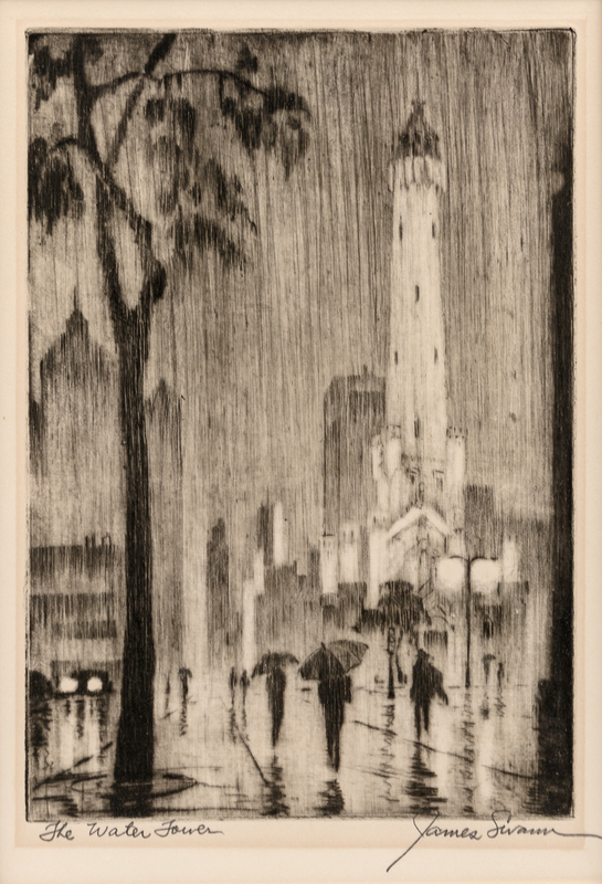 [CHICAGO]. SWANN, James (1905-1985) and WEARY, Allen (b. 1875). A group of 5 etchings of Chicago landmarks and scenes, ca 1910-1959, comprising: