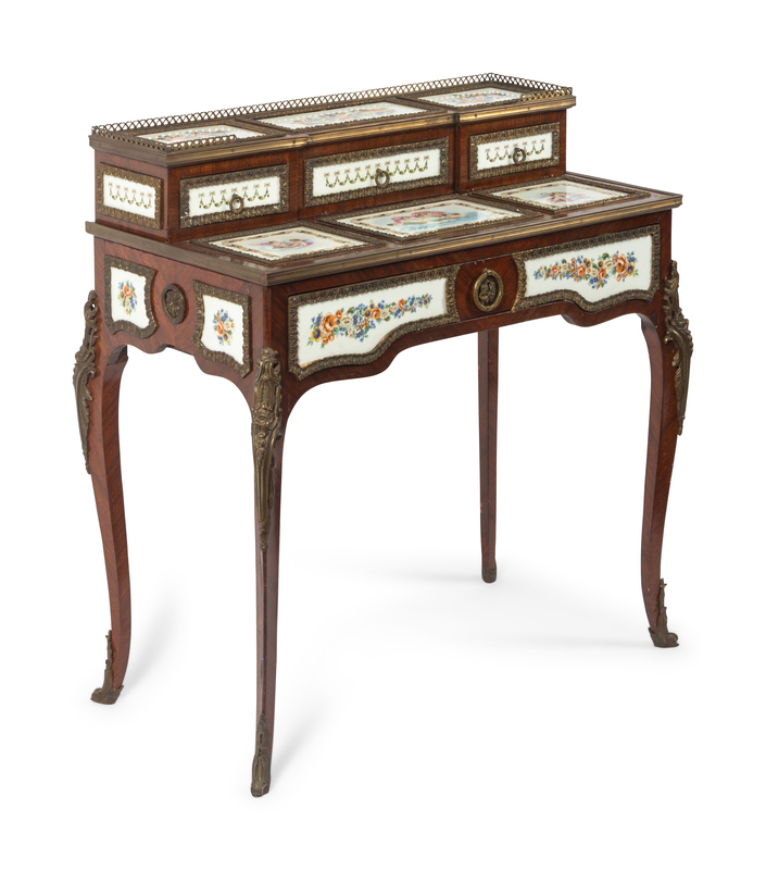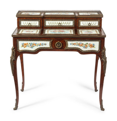 A Louis XV Style Porcelain and Gilt Bronze Mounted Dressing Table