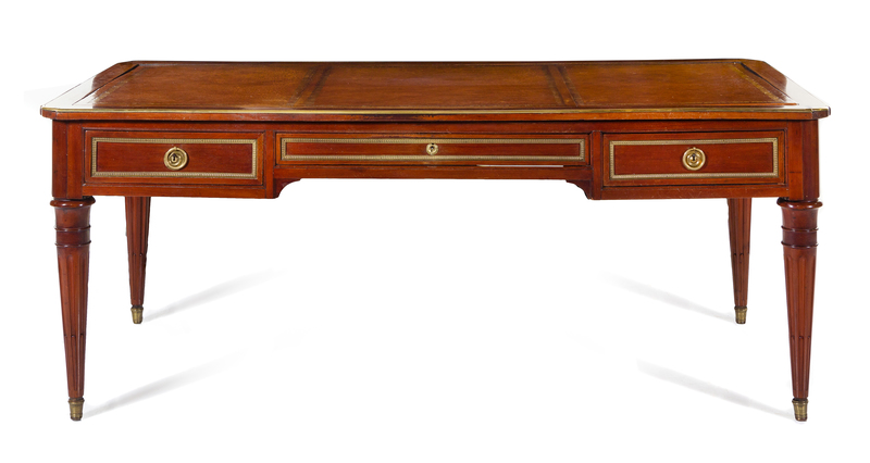 A Louis XVI Brass Mounted Mahogany Bureau Plat