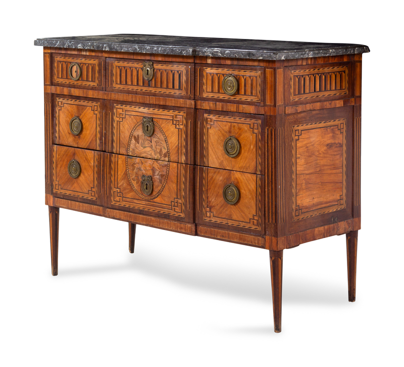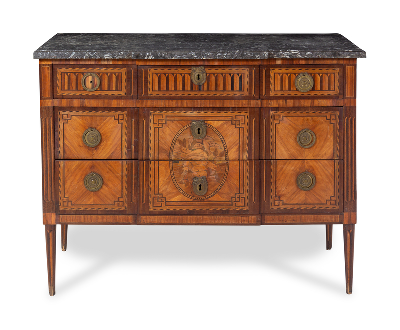 A Louis XVI Marquetry Marble-Top Commode