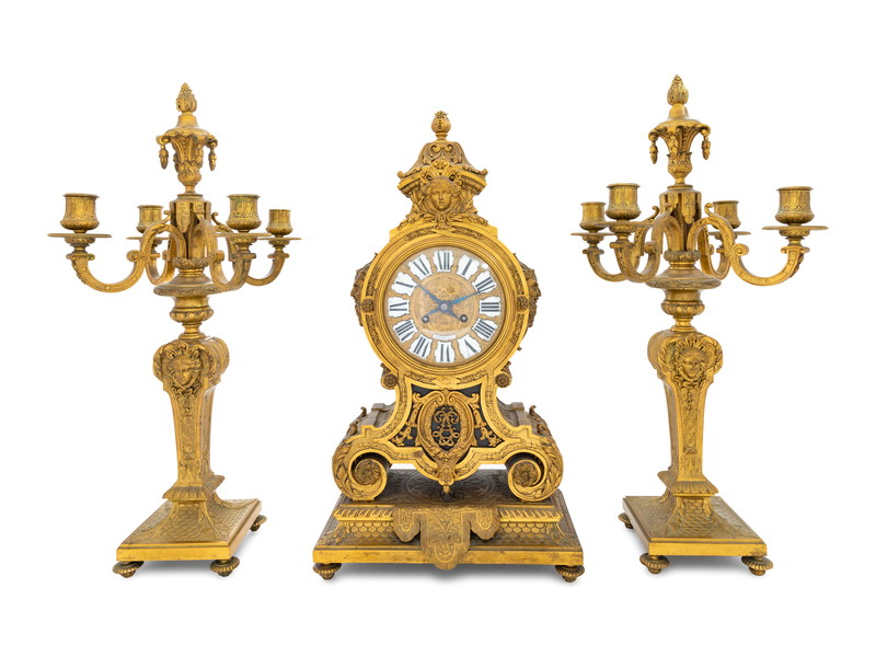 A Louis XVI Style Gilt Bronze Clock Garniture
