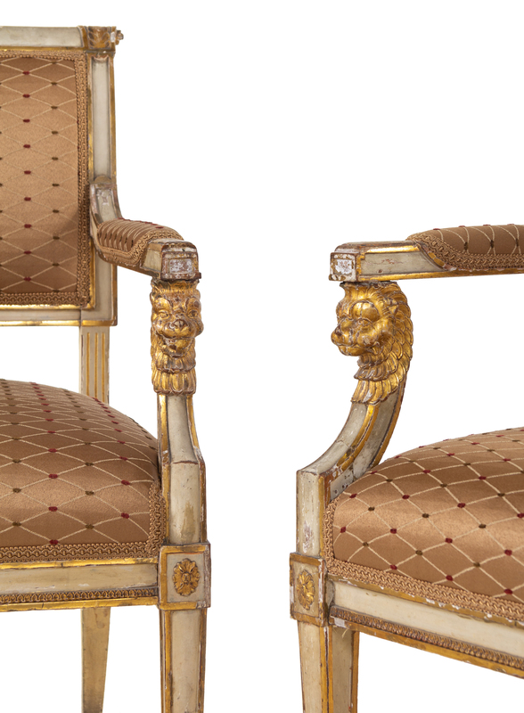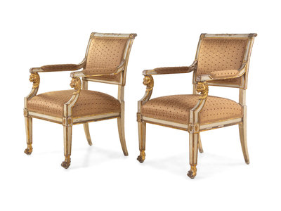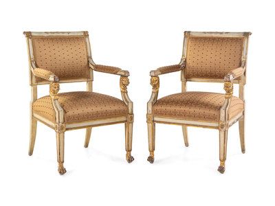 A Pair of Empire Painted and Parcel Gilt Fauteuils