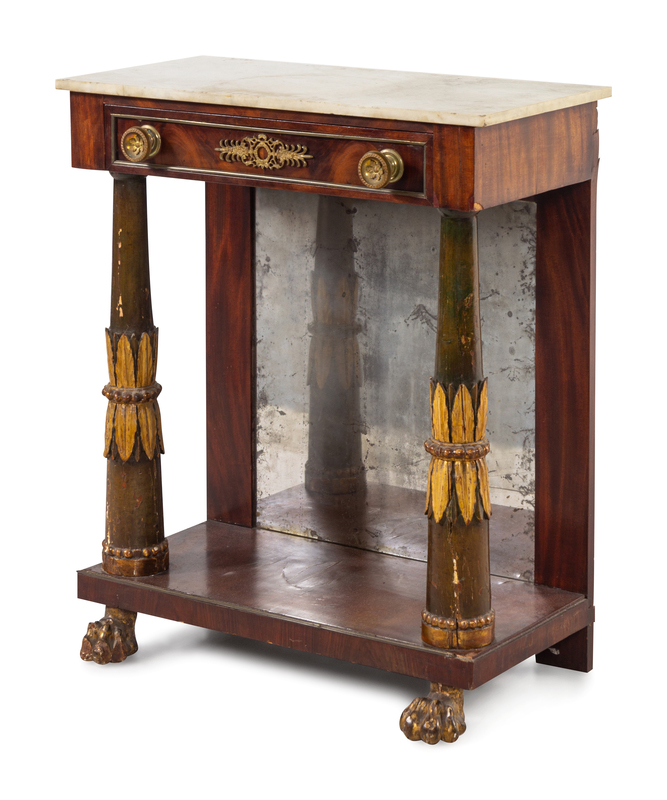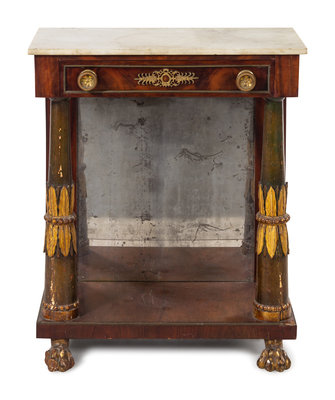 An Empire Parcel Gilt and Figured Mahogany Marble-Top Pier Table
