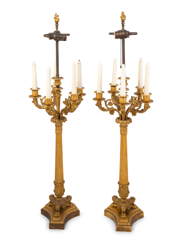 A Pair of Empire Gilt Bronze Five-Light Candelabra