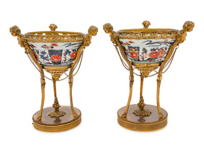 A Pair of French Gilt Bronze Mounted Chinese Porcelain Coupes