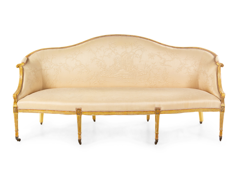 A George III Cream-Painted and Parcel Gilt Camelback Sofa
