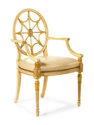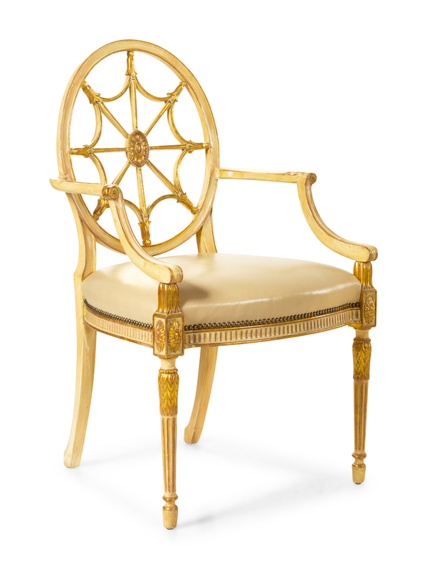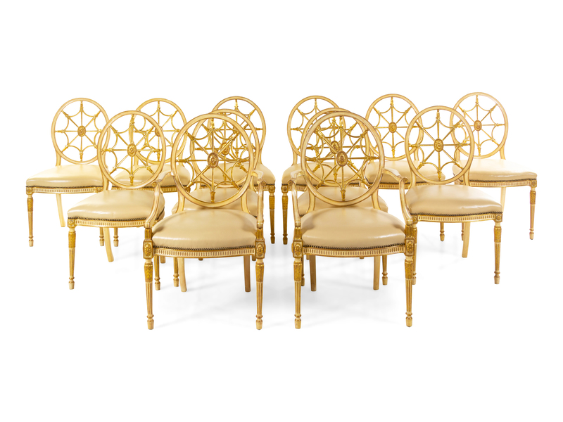 A Set of Twelve George III Style Cream-Painted and Parcel Gilt Dining Chairs