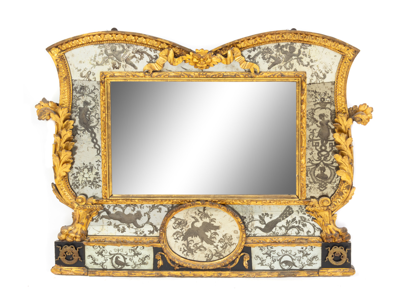 An Italian Etched Glass and Giltwood Mirror
