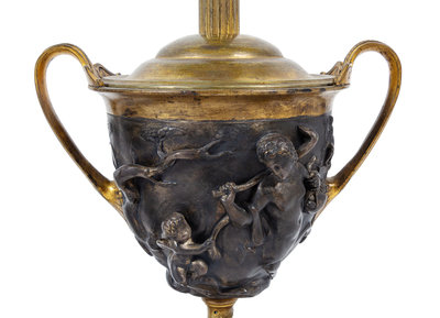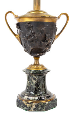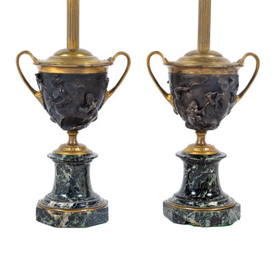 A Pair of Grand Tour Bronze and Marble Urns Mounted as Lamps