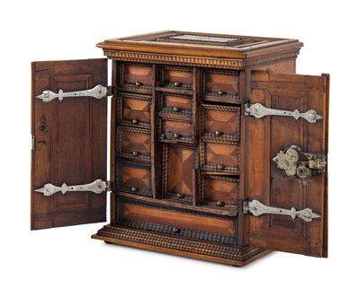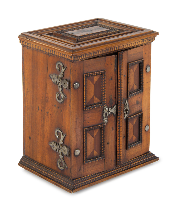 A Continental Parquetry Jewelry Cabinet