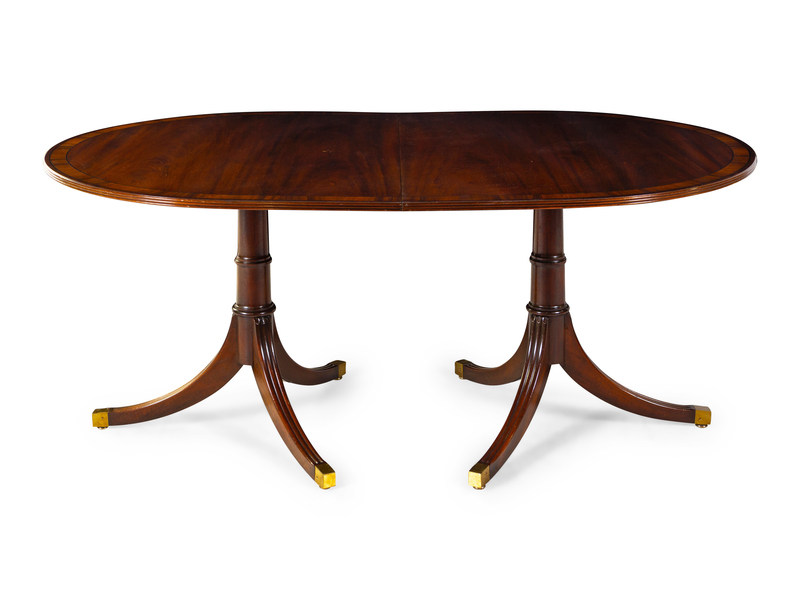 A Regency Style Figured Mahogany Two-Pedestal Dining Table