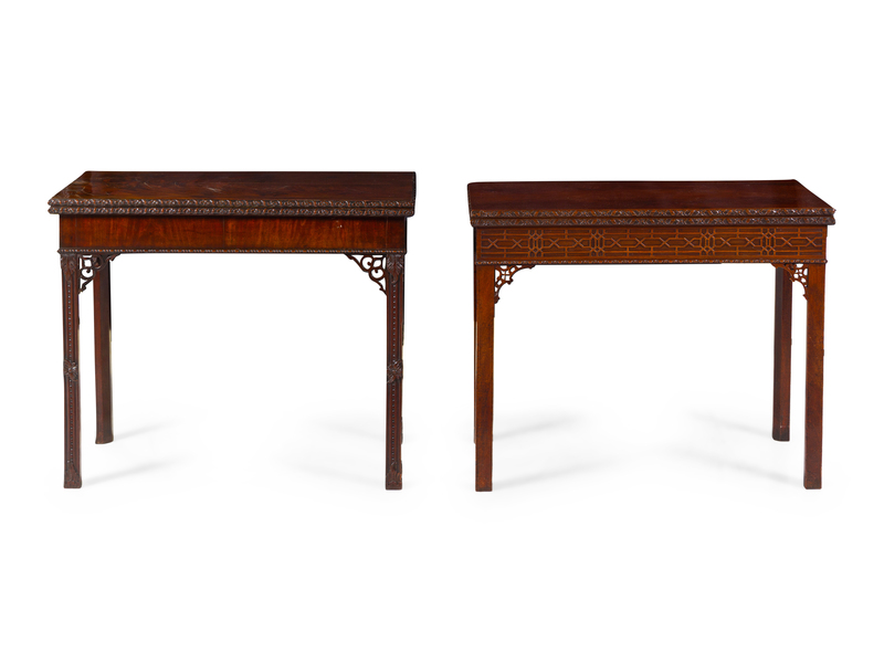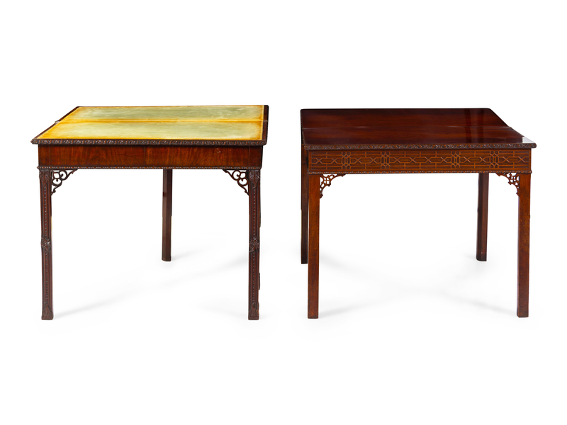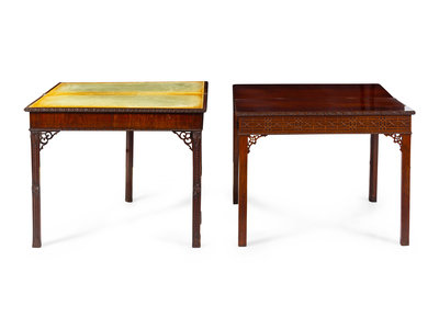 Two Chinese Chippendale Carved and Figured Mahogany Game Tables
