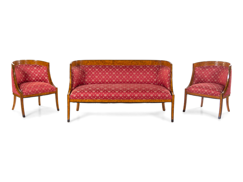 A Continental Parcel Ebonized Burlwood Salon Suite