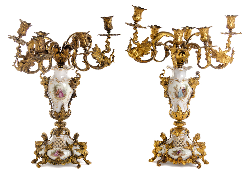 A Pair of Gilt Bronze and Berlin (K.P.M.) Porcelain Candelabra
